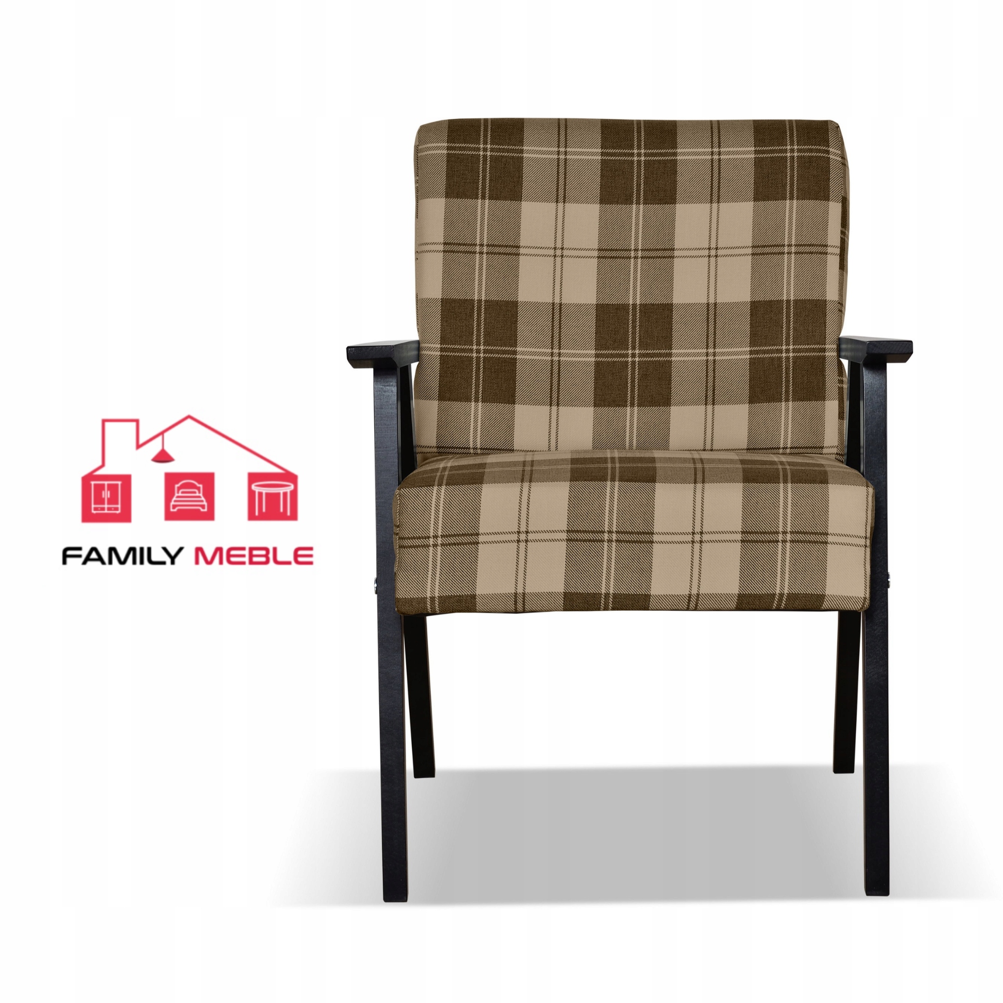 Fotel PRL zestaw retro vintage SOLER Family Meble krata brązowo – beżowa