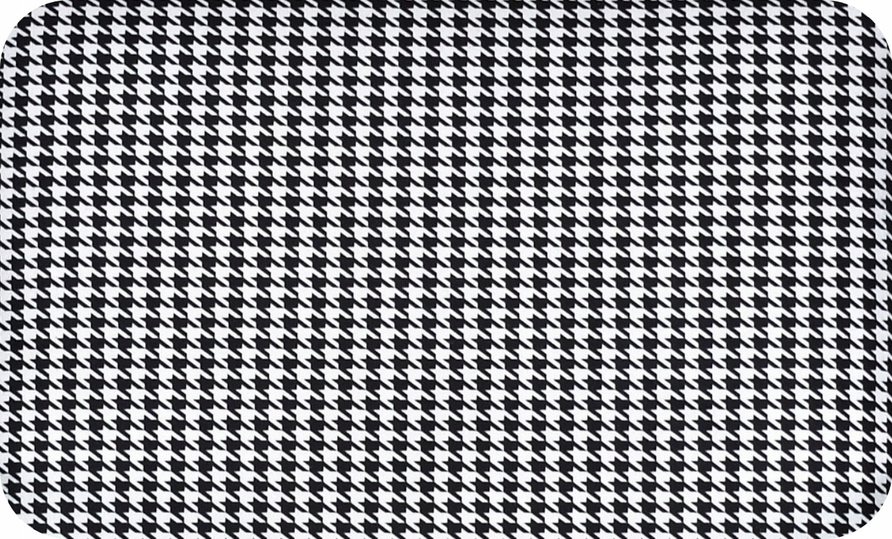 Tkanina o wysokiej jakości – klasyczna pepitka nadrukowana na miękkim, przyjemnym w dotyku welurze. Materiał jest łatwy do utrzymania w czystości, prosty w pielęgnacji i idealnie wpisuje się w styl retro i vintage.