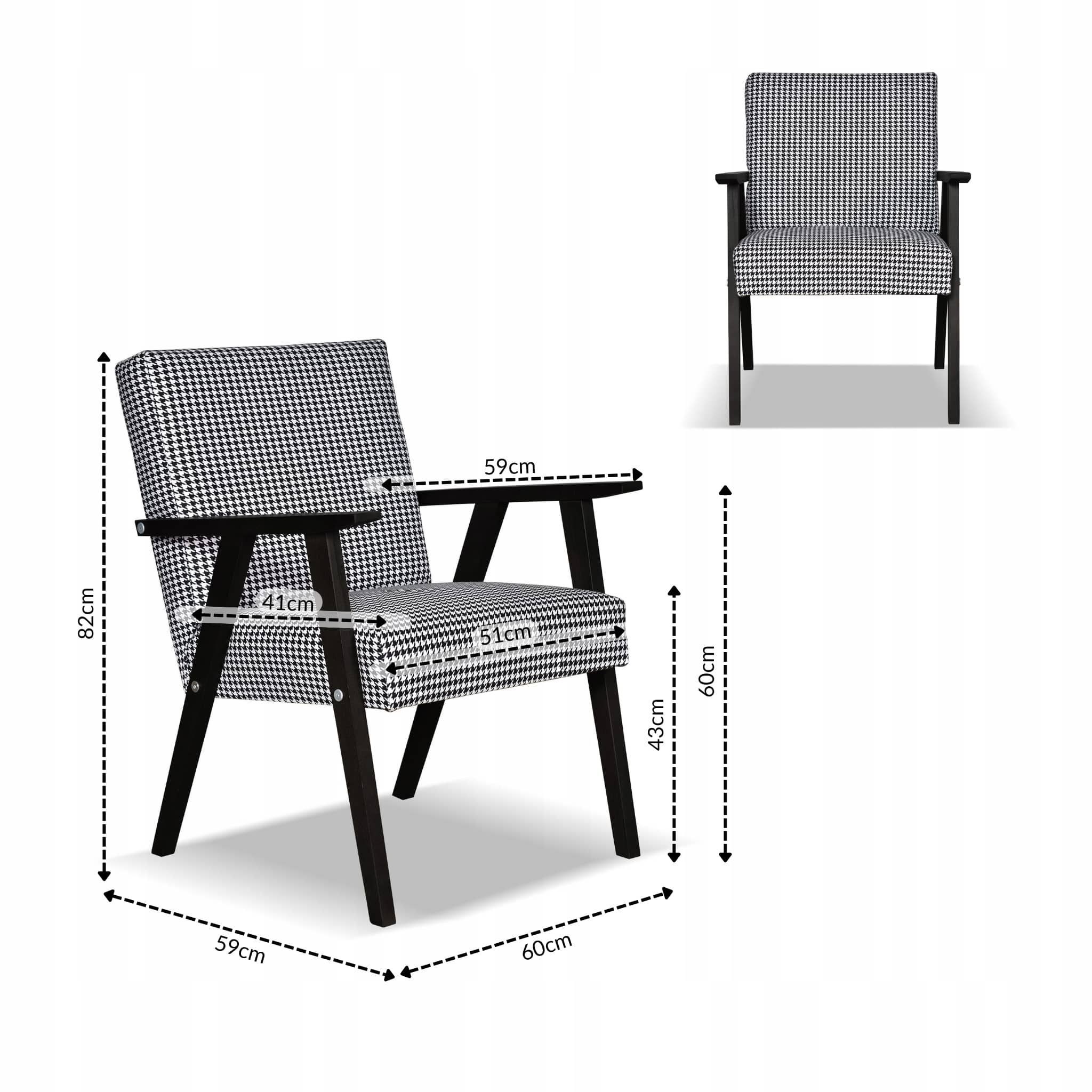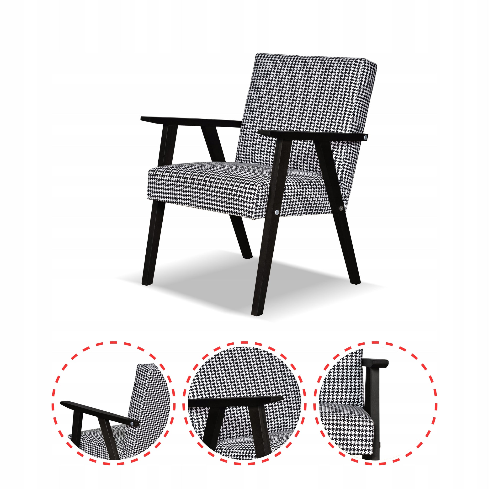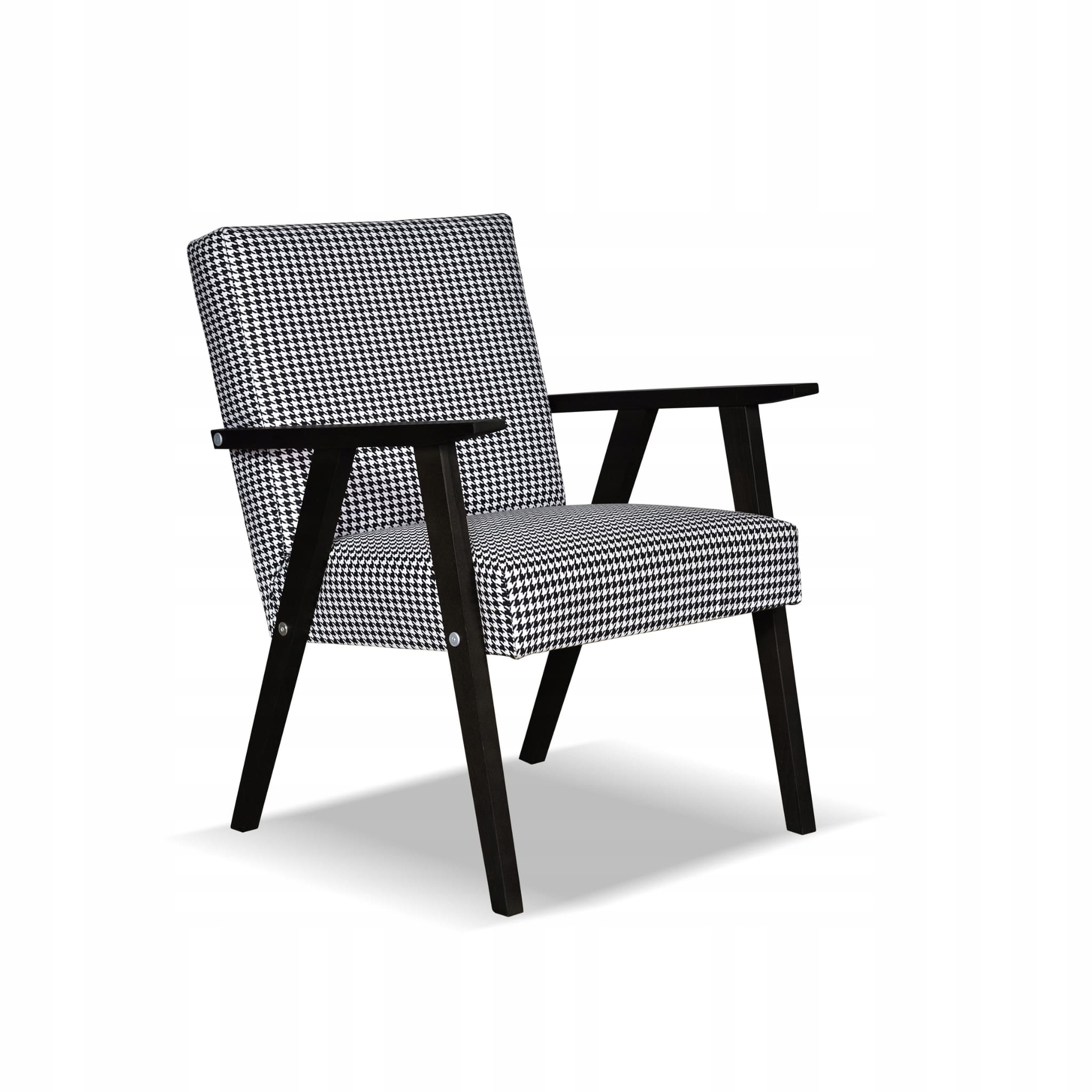 Fotel w stylu PRL retro vintage SOLER Family Meble Pepitka czarno – biała