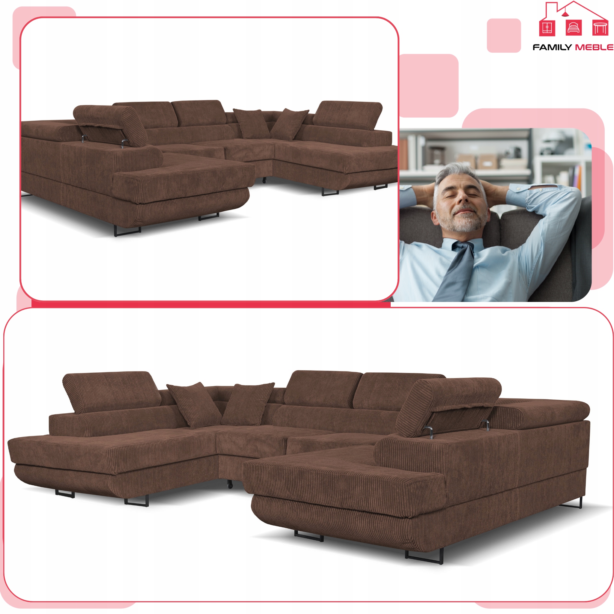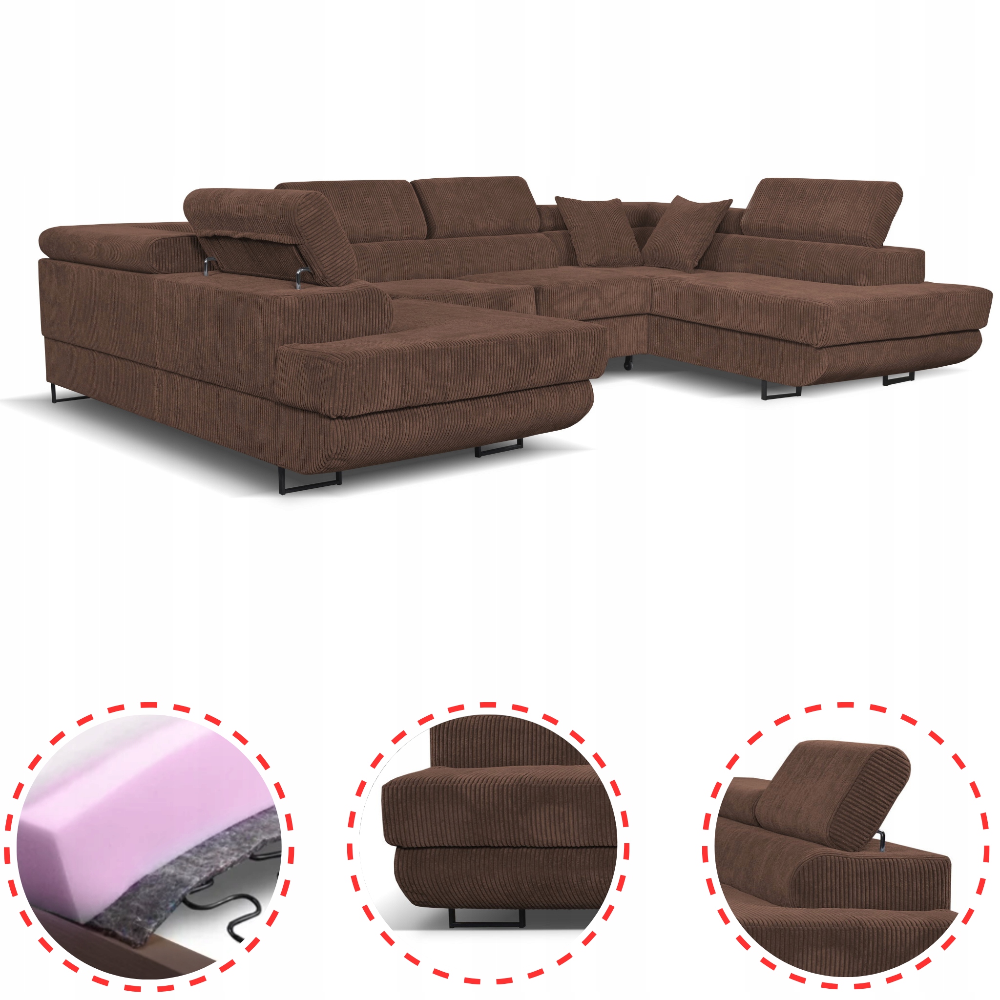 2.Stąd wyposażyliśmy narożnik w regulowane w wielu płaszczyznach zagłówki – żebyście dostosowali ją do swojej ulubionej, naturalnej pozycji, a nie na odwrót. To Wy macie dyktować narożnikowi swoje warunki, a nie ona Wam.