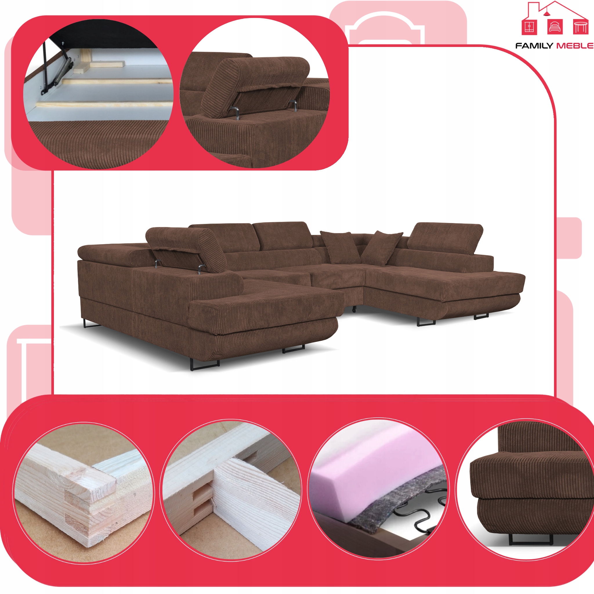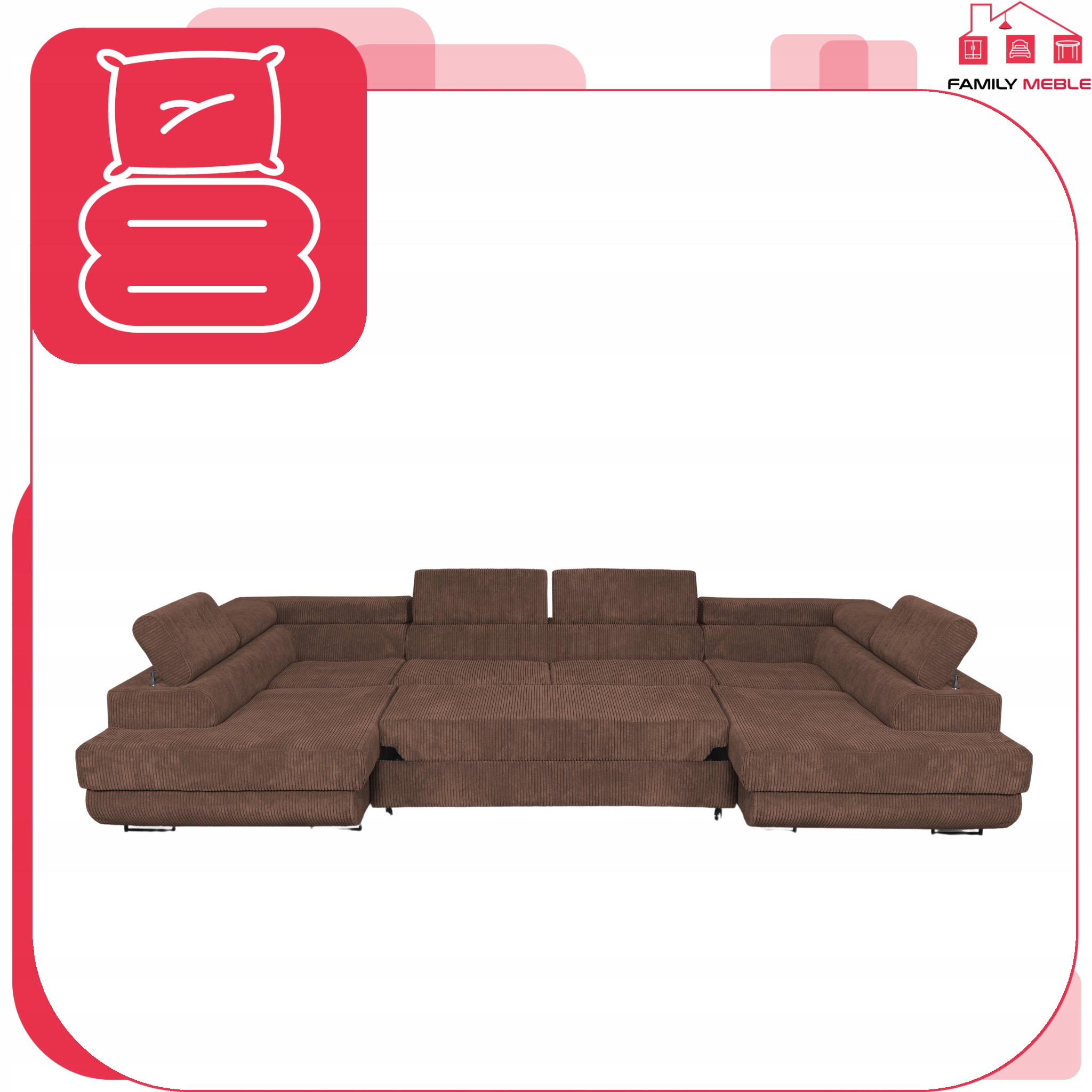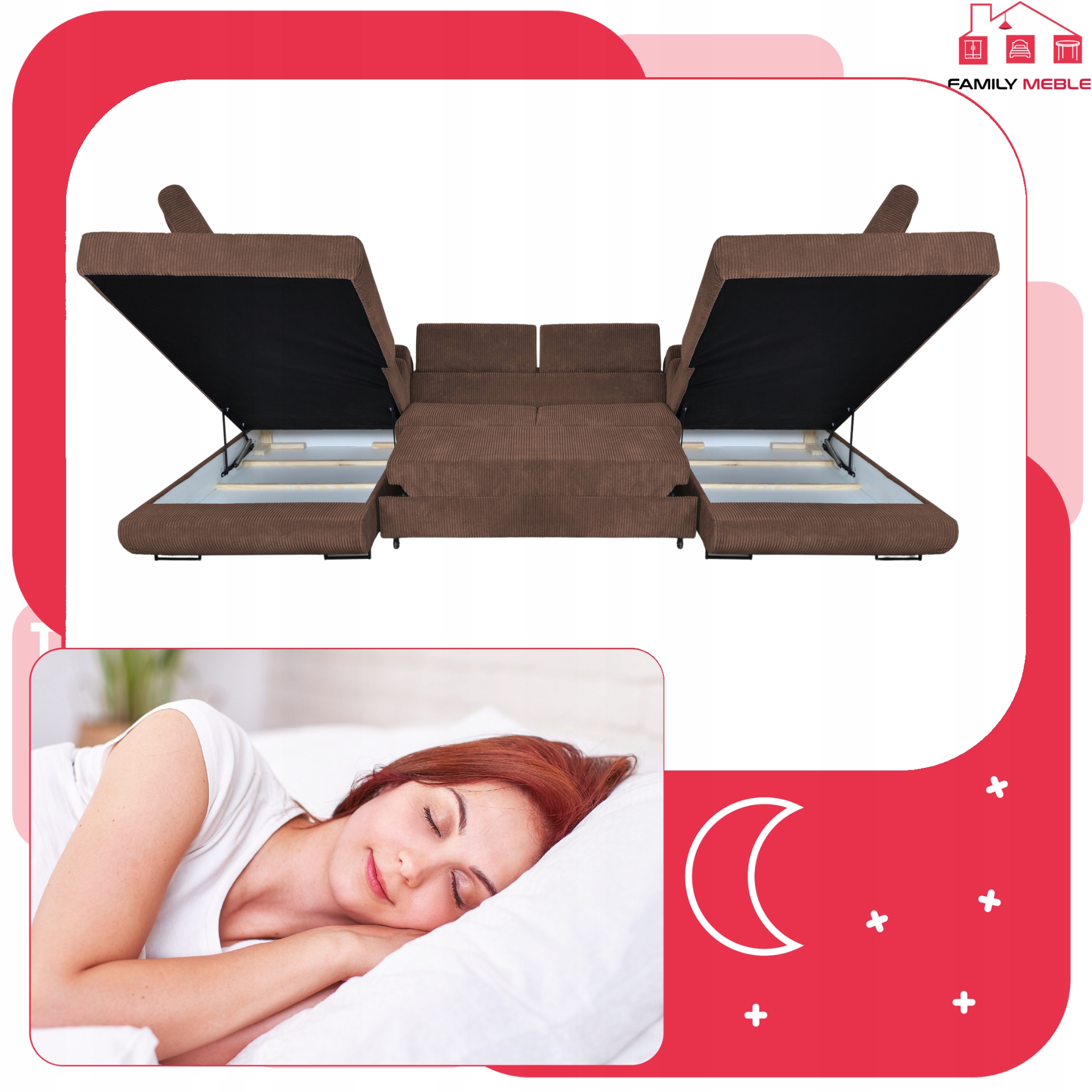 3.Dodatkowe spanie to idealna opcja dla tych, którzy w każdej porze dnia i nocy mogą spodziewać się gości. Spotkanie towarzyskie może się przeciągnąć o parę godzin, bo gwarantujemy, że Wasi przyjaciele nie będą chcieli zejść z naszego narożnika. Wtedy najmniejszy Wasz problem to znalezienie miejsca do spania, bowiem narożnik po rozłożeniu dzięki wygodnemu i szybkiemu systemowi “delfin” oferuje pełnowymiarowe, wygodną przestrzeń. Po przespanej w komforcie nocy, pomoże Wam duży pojemnik na pościel, który pomieści wszystkie kołdry i poduszki, które chwile temu zamieniły ten piękny mebel w pełnowartościowe łóżko.