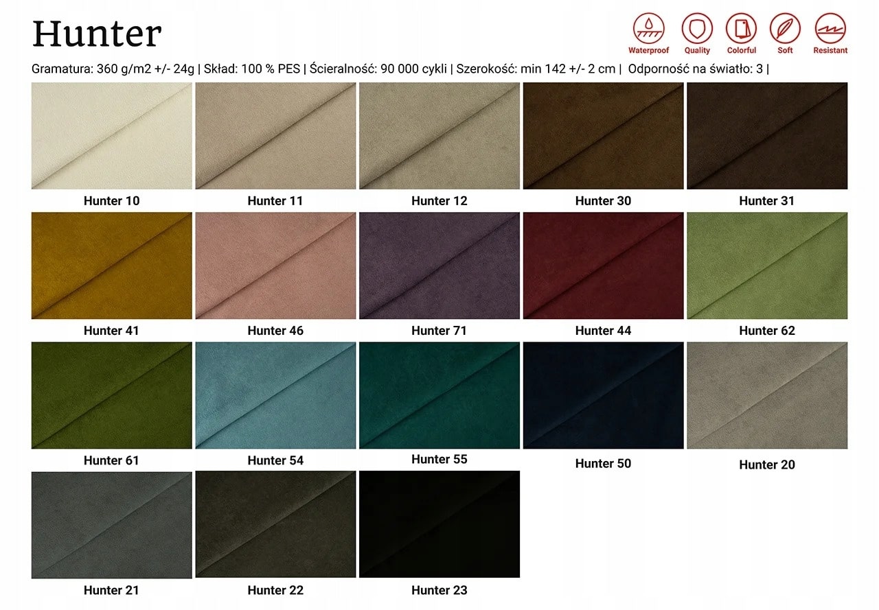 • kolor i numer wybranych tkanin (np. Hunter 10)