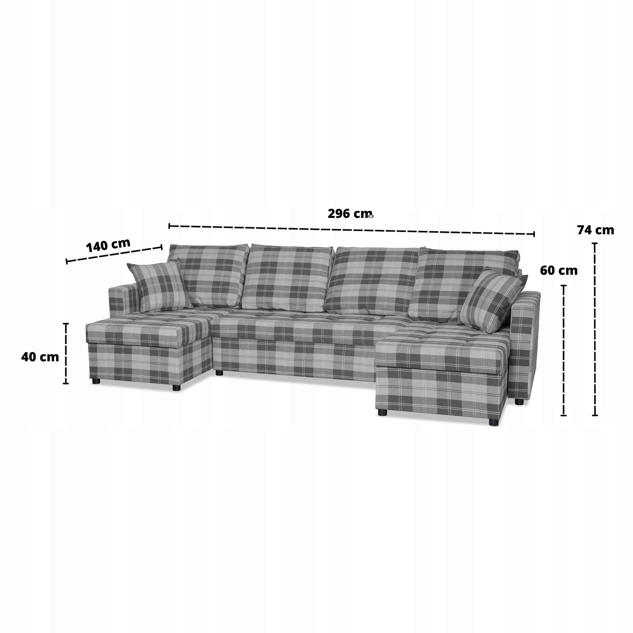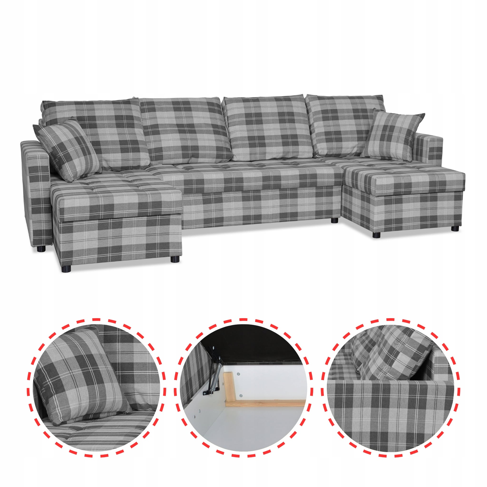 Narożnik Winston BIG U funkcja spania Family Meble krata szara