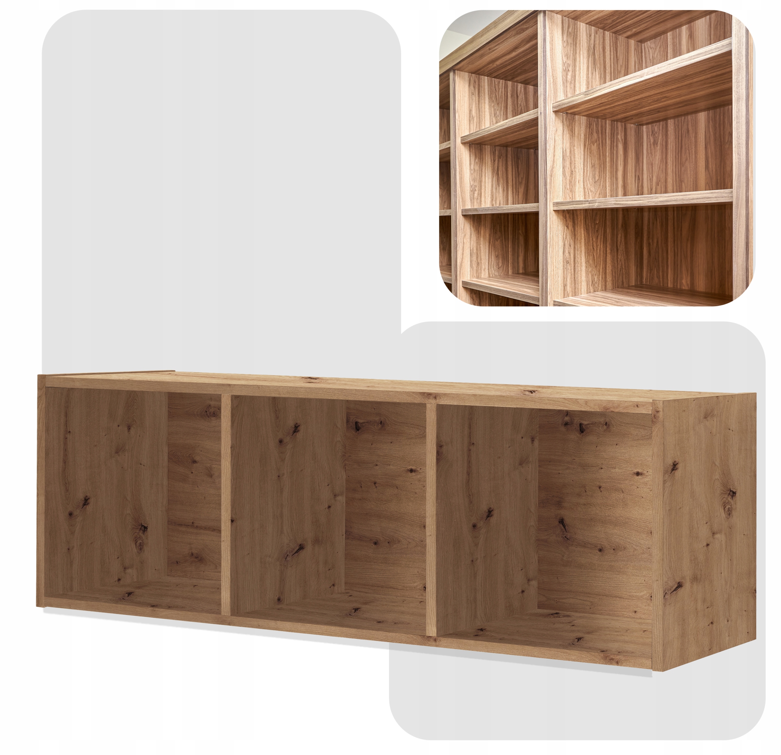 ✅ Uniwersalność (regał możesz postawić lub zawiesić, gdyż posiada nawiercenie z tyłu, co więcej nadaje się do konfiguracji pionowej oraz poziomej)