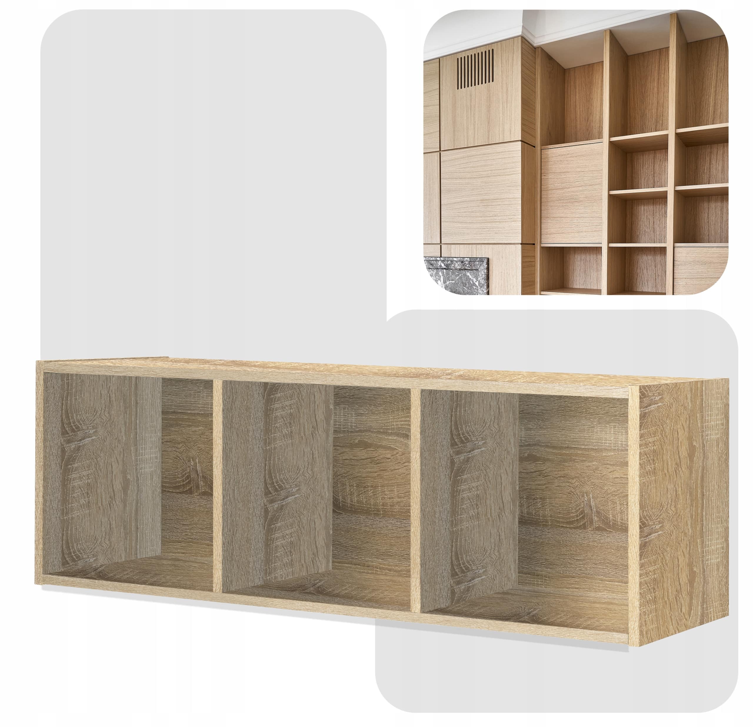 ✅ Uniwersalność (regał możesz postawić lub zawiesić, gdyż posiada nawiercenie z tyłu, co więcej nadaje się do konfiguracji pionowej oraz poziomej)