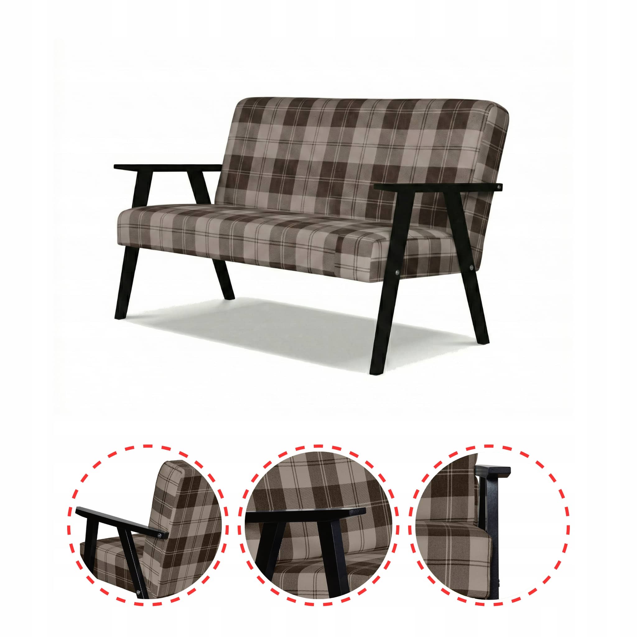 Sofa w stylu PRL retro vintage SOLER Family Meble krata brązowa