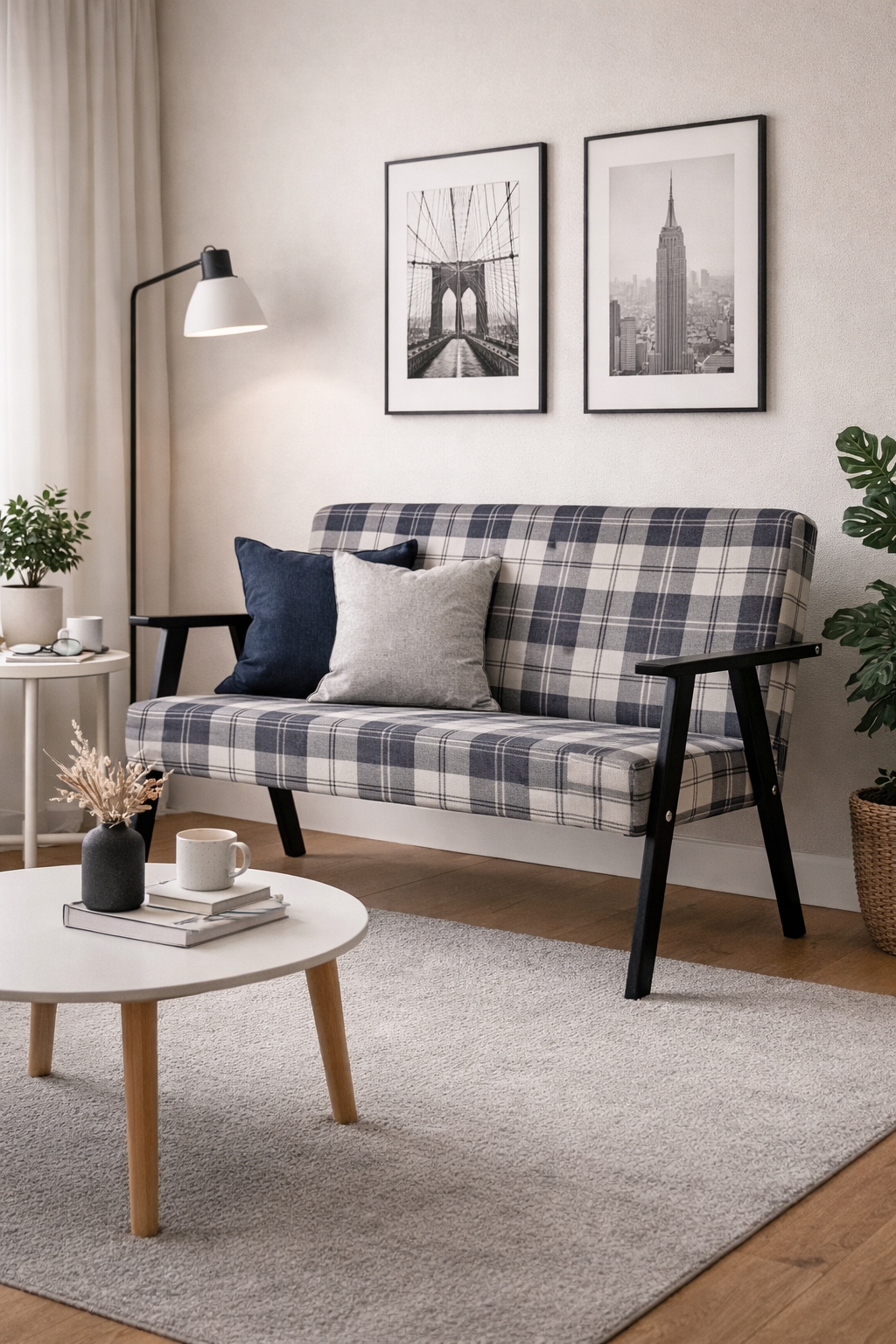 ✅ Materiał tapicerski: Pleciona tkanina w kratę (nie nadruk)