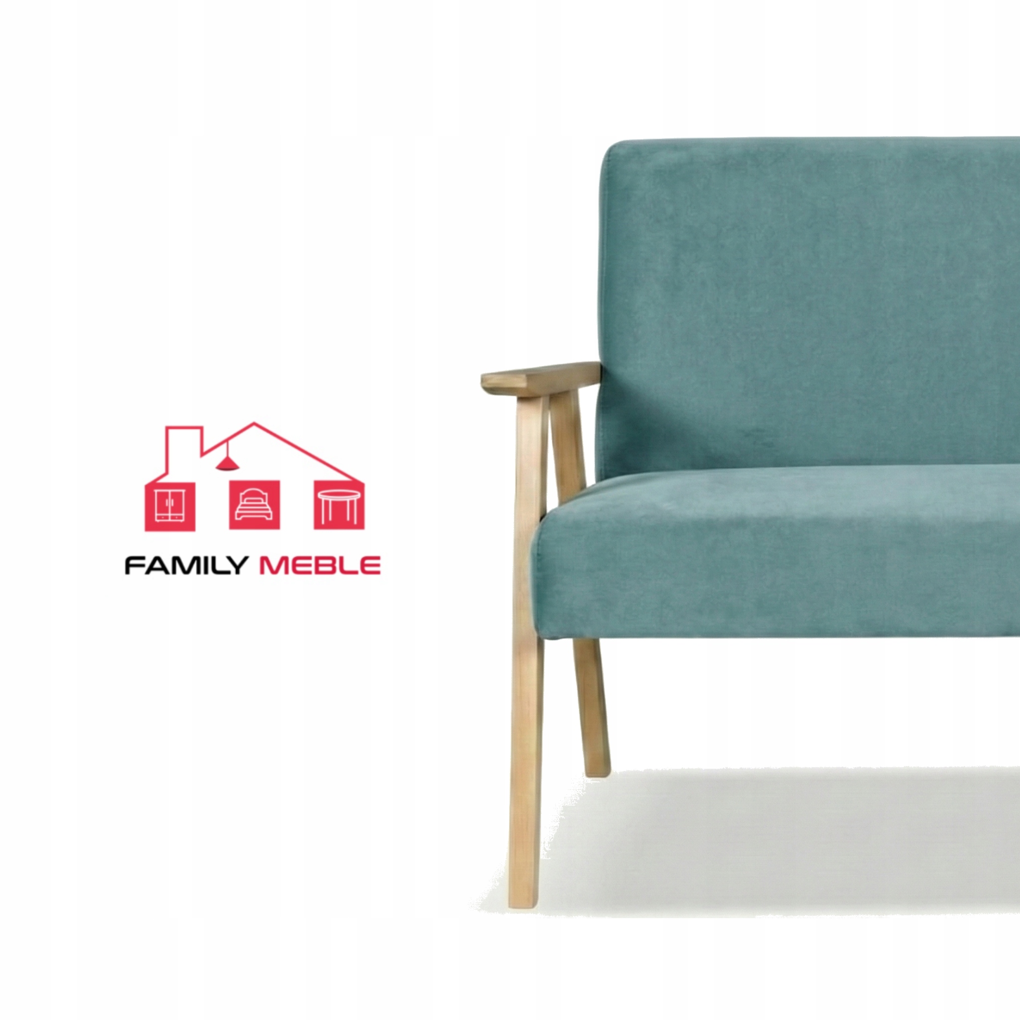 Sofa w stylu PRL retro vintage SOLER Family Meble turkusowy welur Hunter