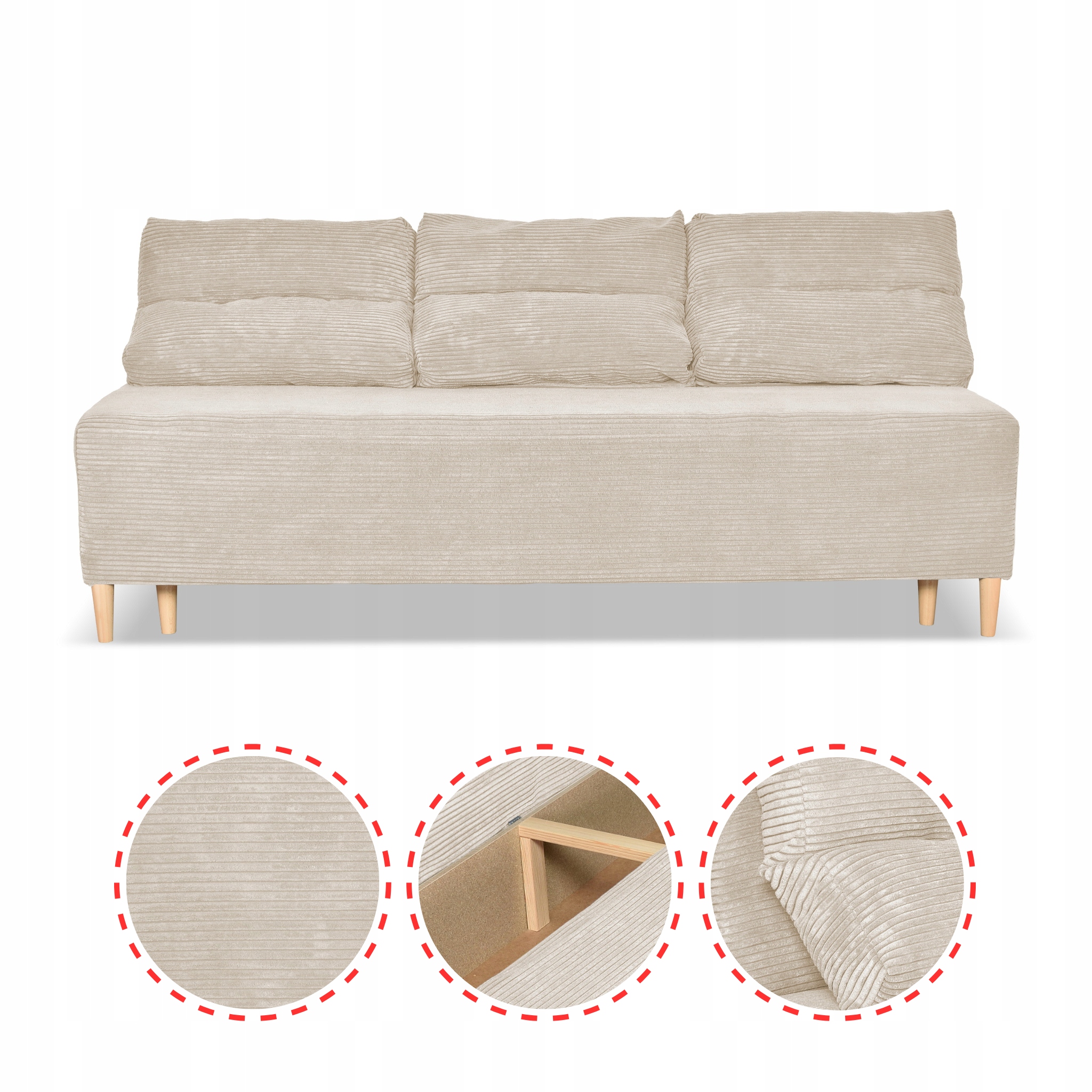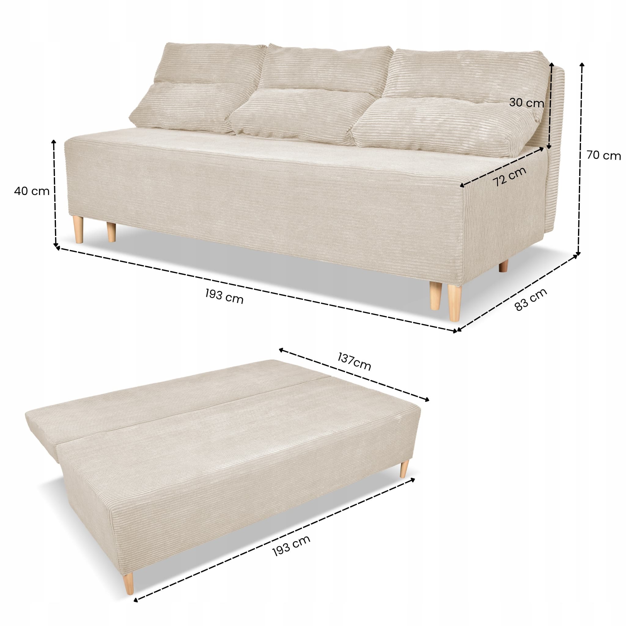 Kanapa posiada dużą powierzchnię spania, a także wysoką i pojemną skrzynię na pościel. Z tego powodu bardzo przydaje się podczas odwiedzin gości.