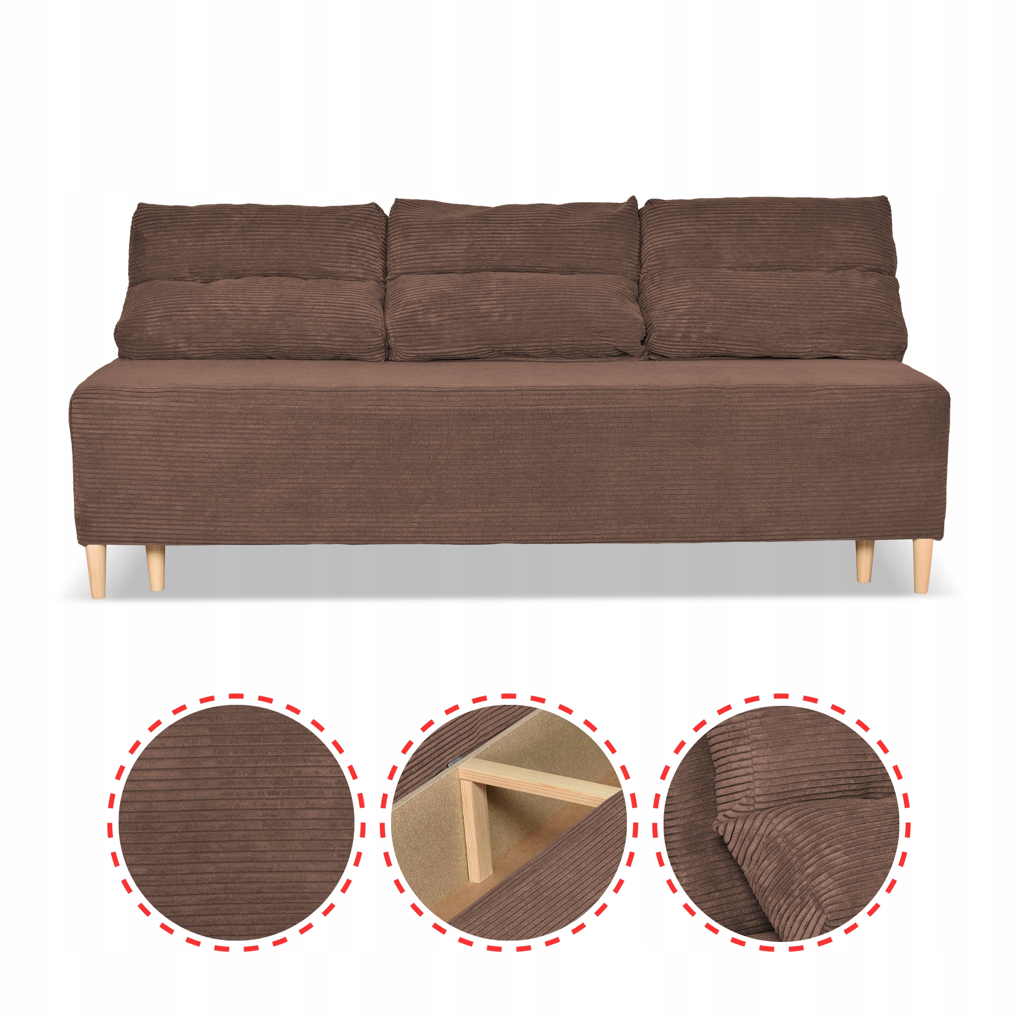 Kanapa posiada dużą powierzchnię spania, a także wysoką i pojemną skrzynię na pościel. Z tego powodu bardzo przydaje się podczas odwiedzin gości.