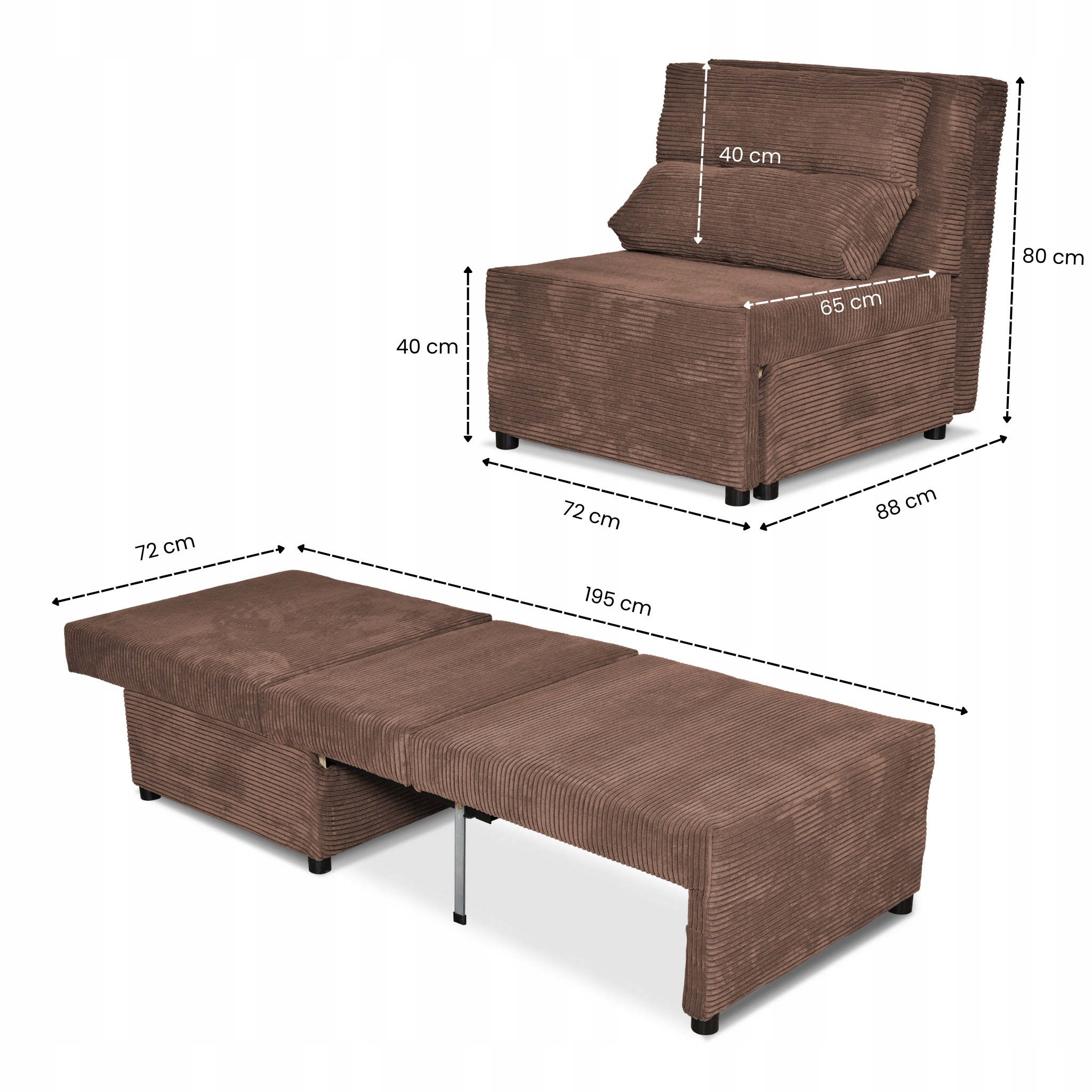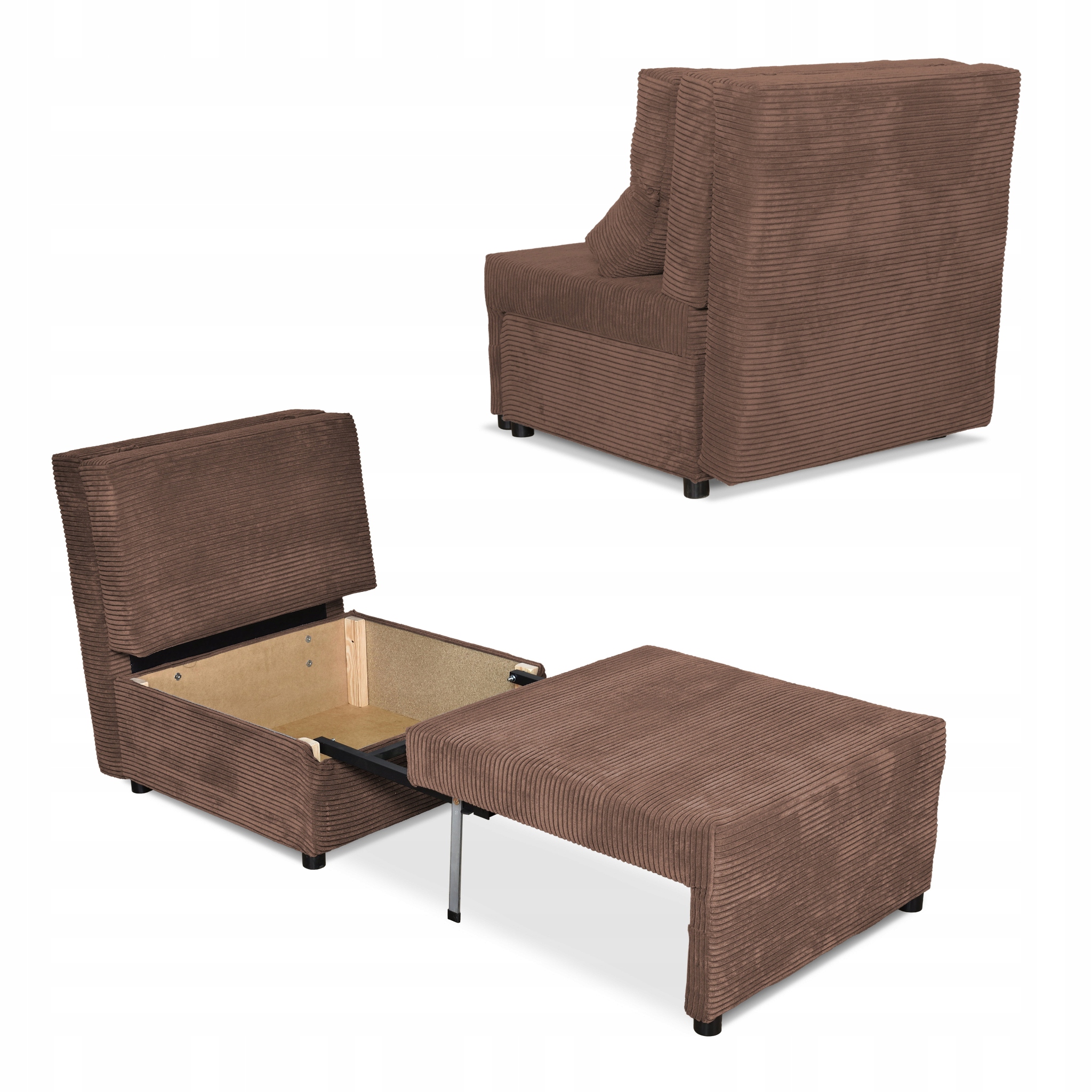 Fotel połączy wygodę siedzenia z funkcjonalnością łóżka. To idealne rozwiązanie do salonu, pokoju młodzieżowego czy pokoju gościnnego. Dzięki solidnej konstrukcji, komfortowej piance HR o grubości 9 cm oraz mechanizmowi rozkładania z pojemnikiem na pościel, sprawdzi się zarówno na co dzień, jak i okazjonalnie jako miejsce do spania.