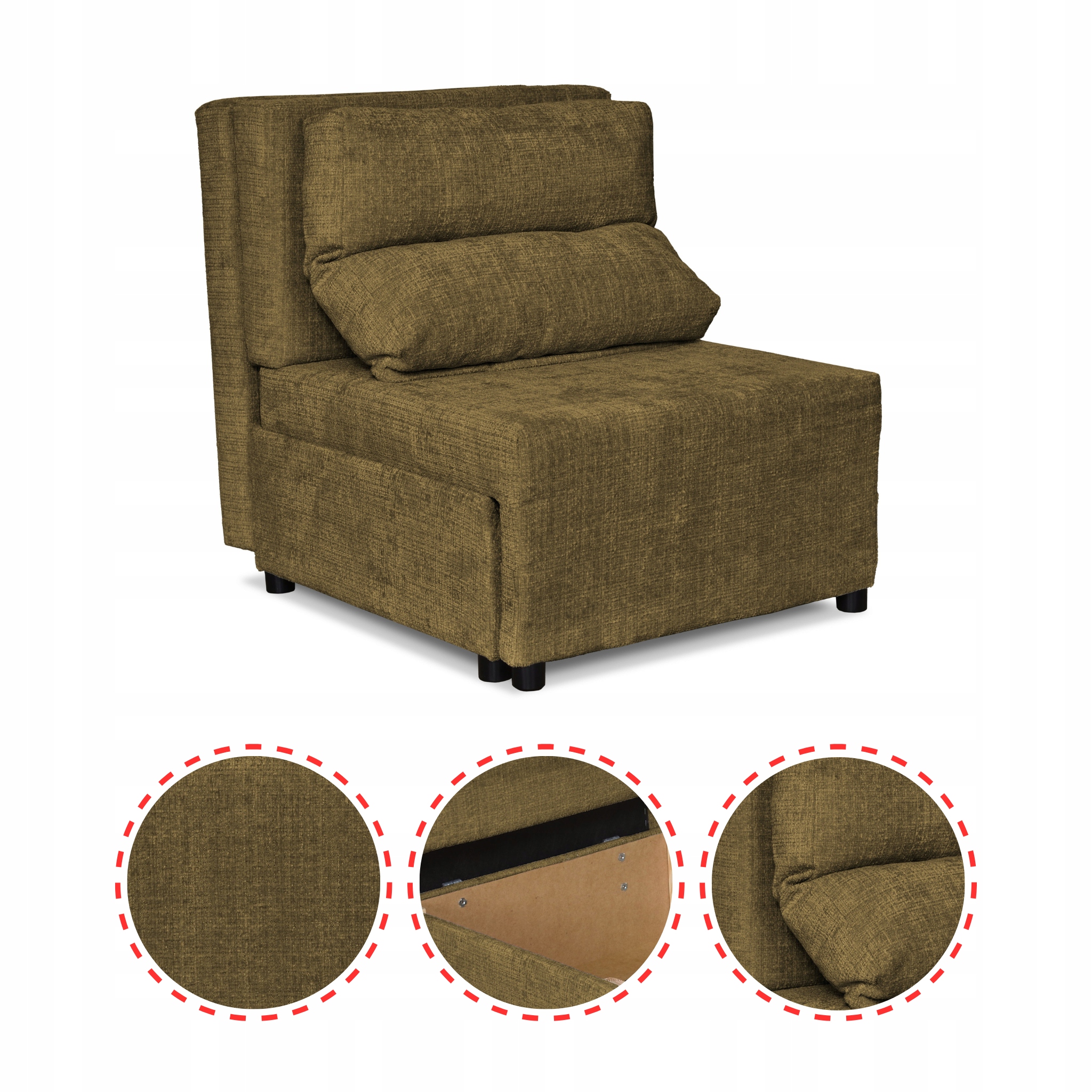 Fotel połączy wygodę siedzenia z funkcjonalnością łóżka. To idealne rozwiązanie do salonu, pokoju młodzieżowego czy pokoju gościnnego. Dzięki solidnej konstrukcji, komfortowej piance HR o grubości 9 cm oraz mechanizmowi rozkładania z pojemnikiem na pościel, sprawdzi się zarówno na co dzień, jak i okazjonalnie jako miejsce do spania.