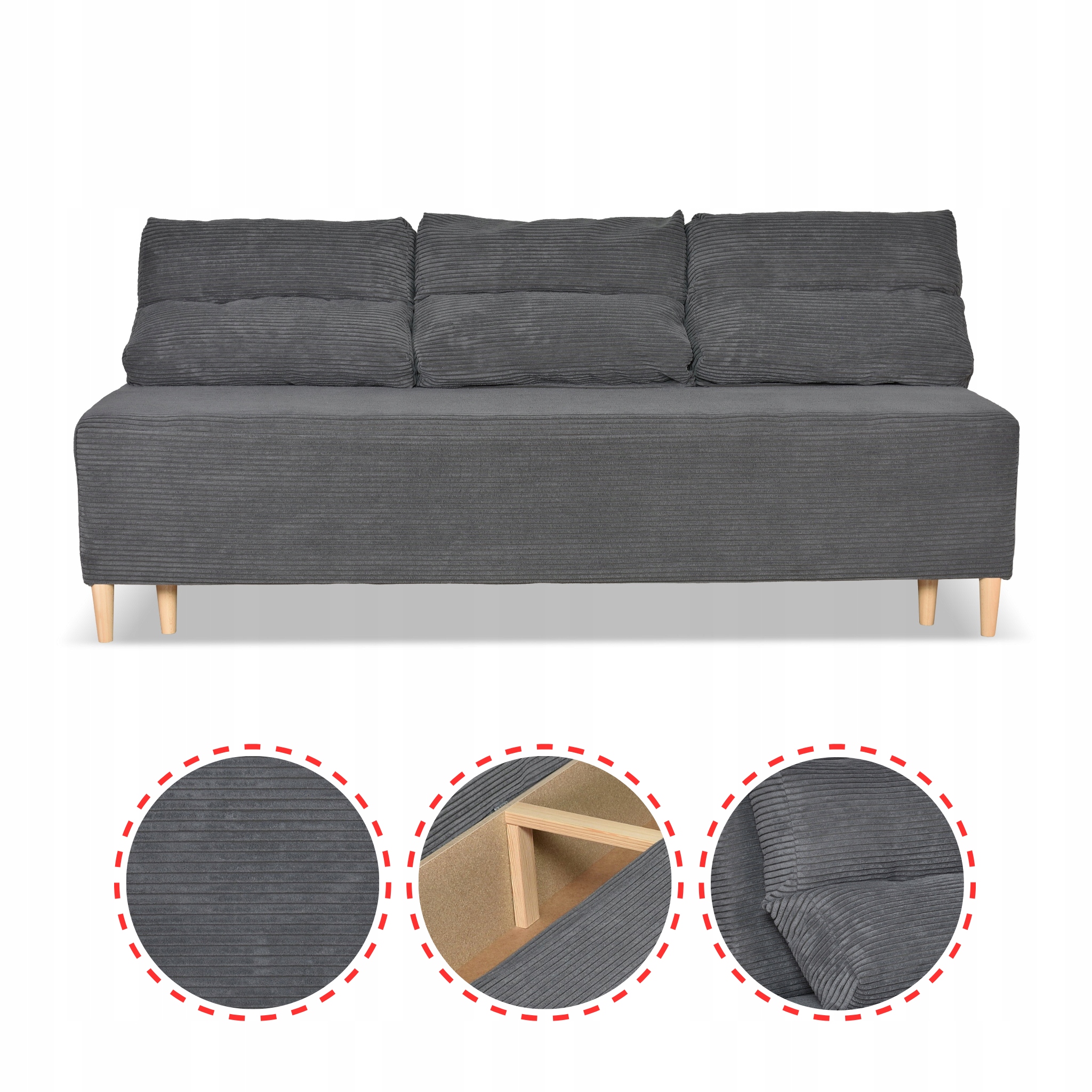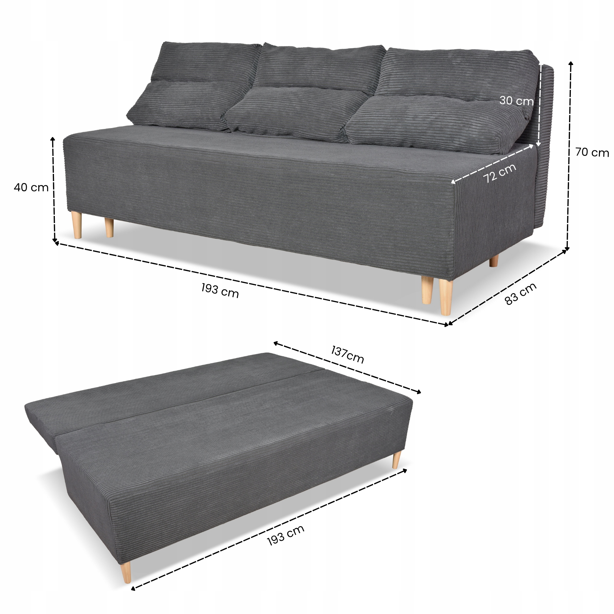 Kanapa posiada dużą powierzchnię spania, a także wysoką i pojemną skrzynię na pościel. Z tego powodu bardzo przydaje się podczas odwiedzin gości.