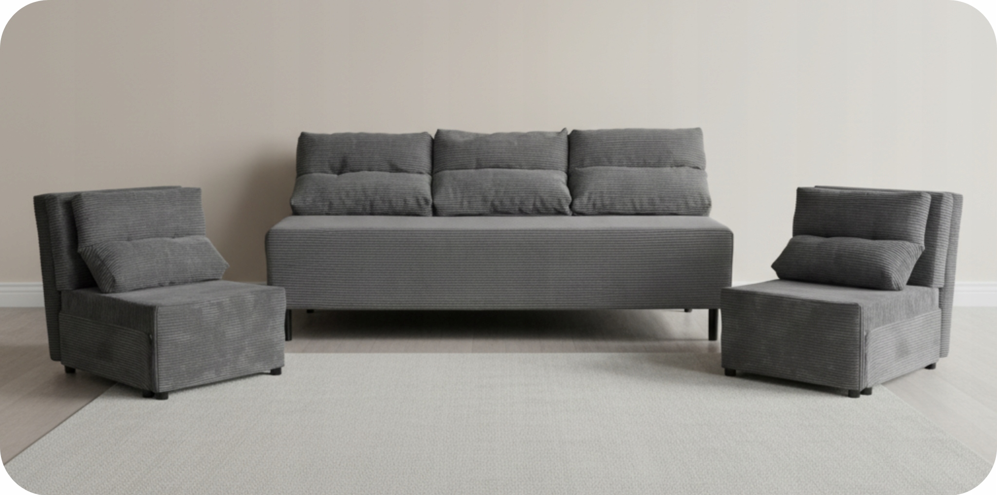 Zestaw mebli z funkcją spania KIMO – kanapa + 2 fotele