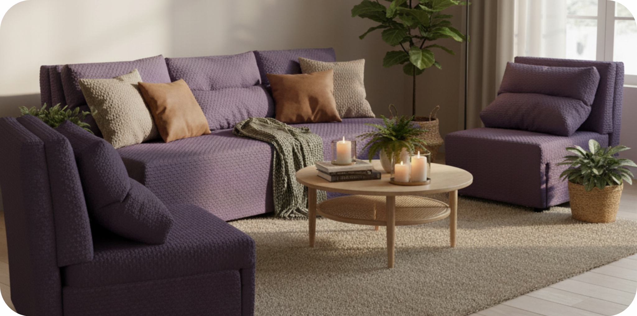✅ Dodatkowe nogi Cała kanapa stoi na 6 stabilnych nogach z tworzywa sztucznego, dzięki temu czujemy się wygodnie i pewnie (nóżki drewniane na zdjęciach nie są dostępne w tym zestawie)