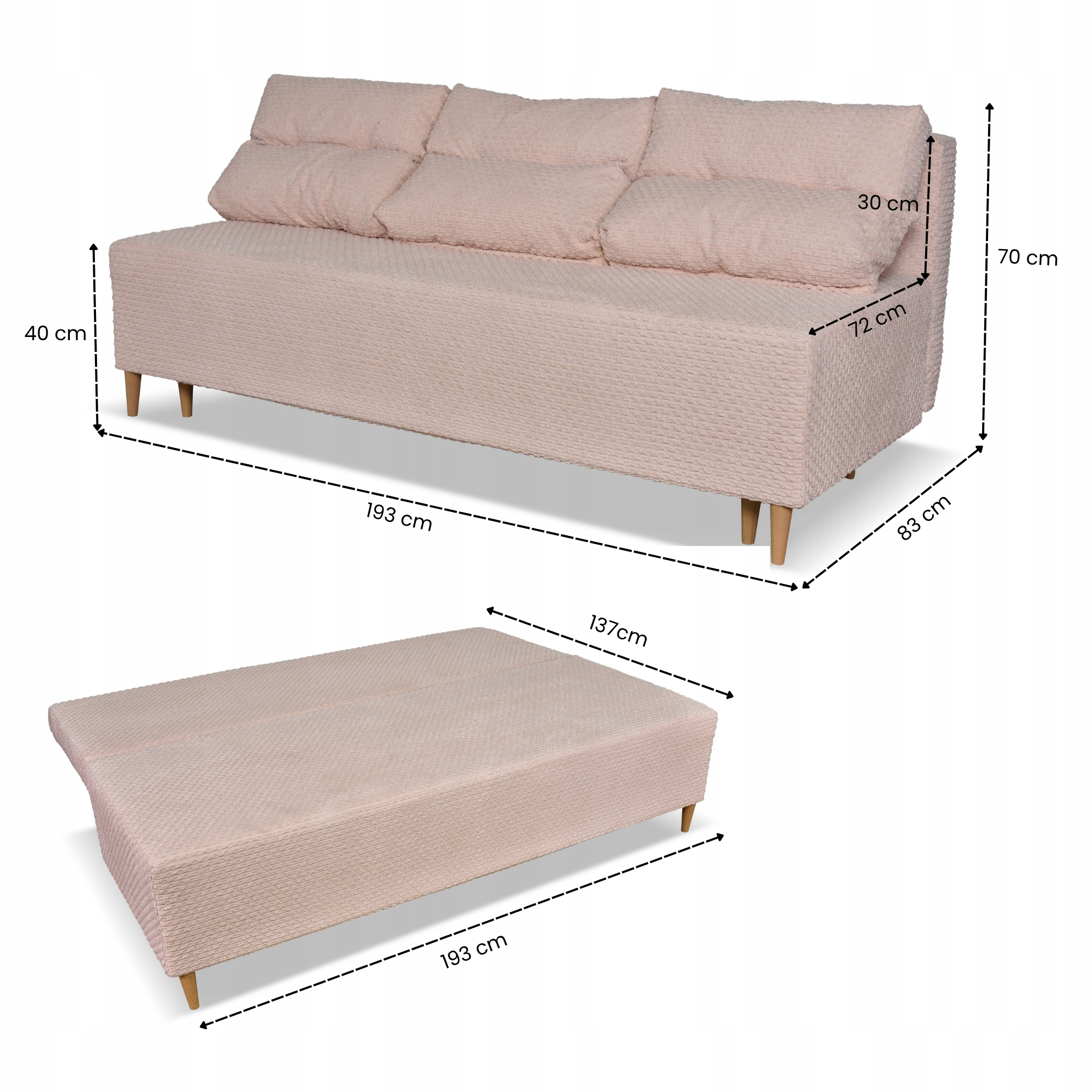 • Pojemnik na pościel: TAK, 168cm x 60cm x 24cm