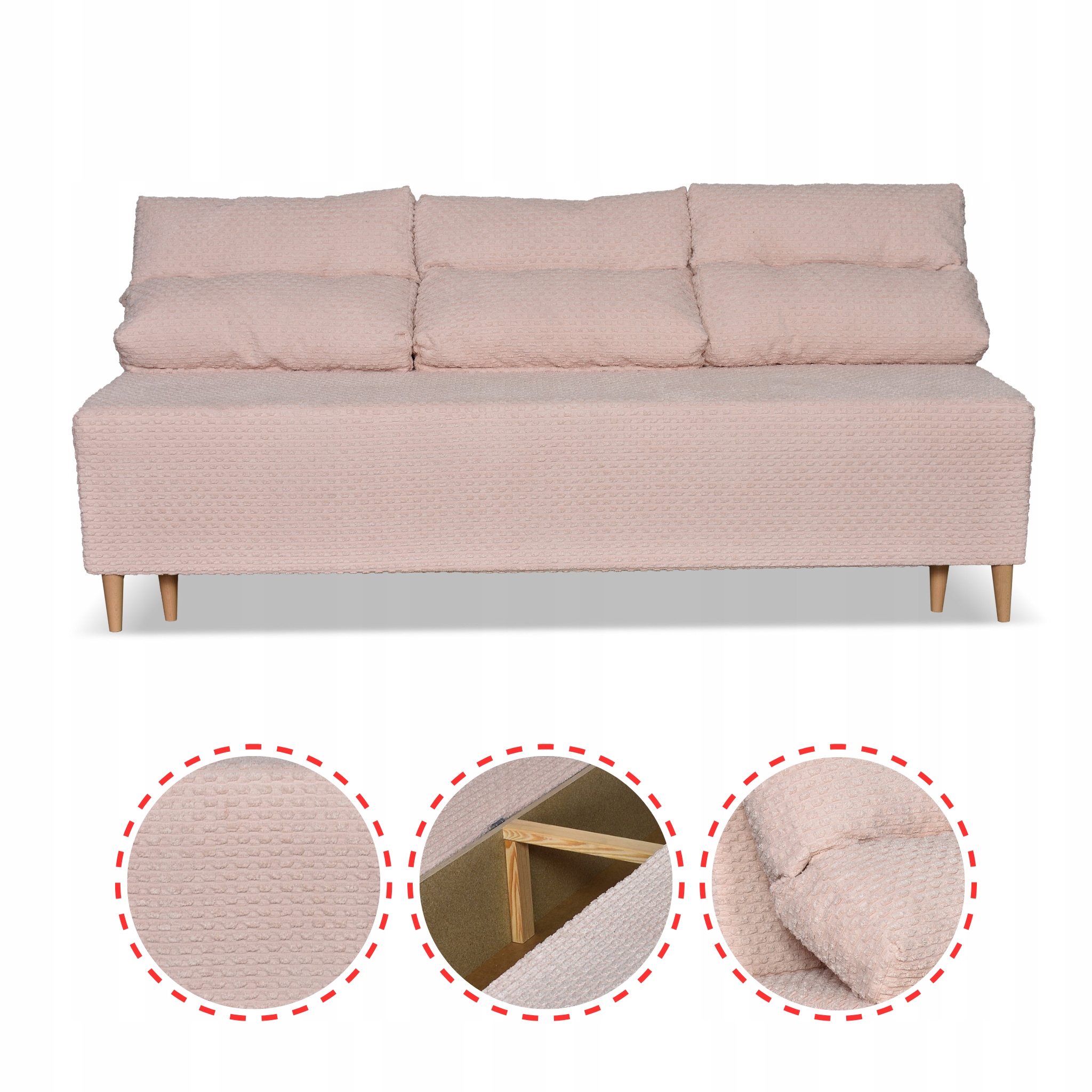 ✅ Dodatkowe nogi Cała kanapa stoi na 6 stabilnych nogach z tworzywa sztucznego, dzięki temu czujemy się wygodnie i pewnie (nóżki drewniane na zdjęciach nie są dostępne w tym zestawie)