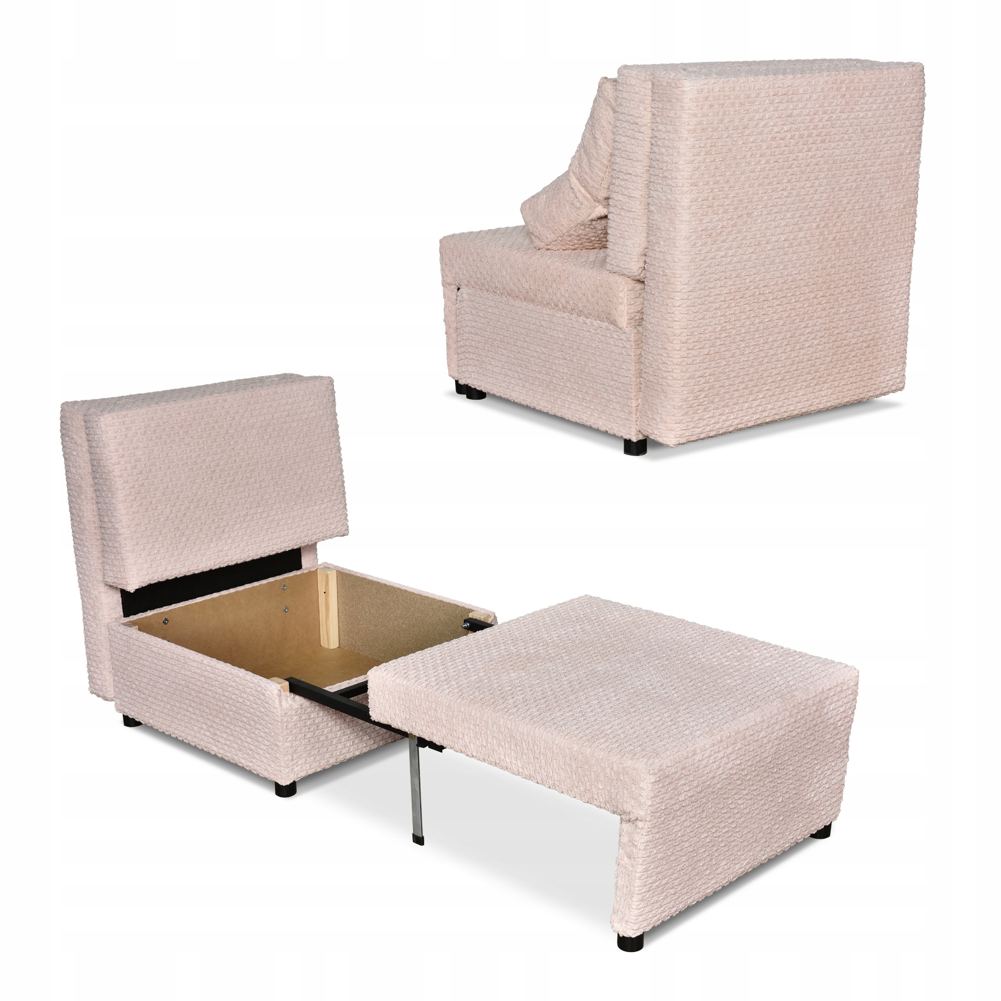 ✅ Do małych mieszkań – połączenie fotela i łóżka z pojemnikiem oszczędza miejsce