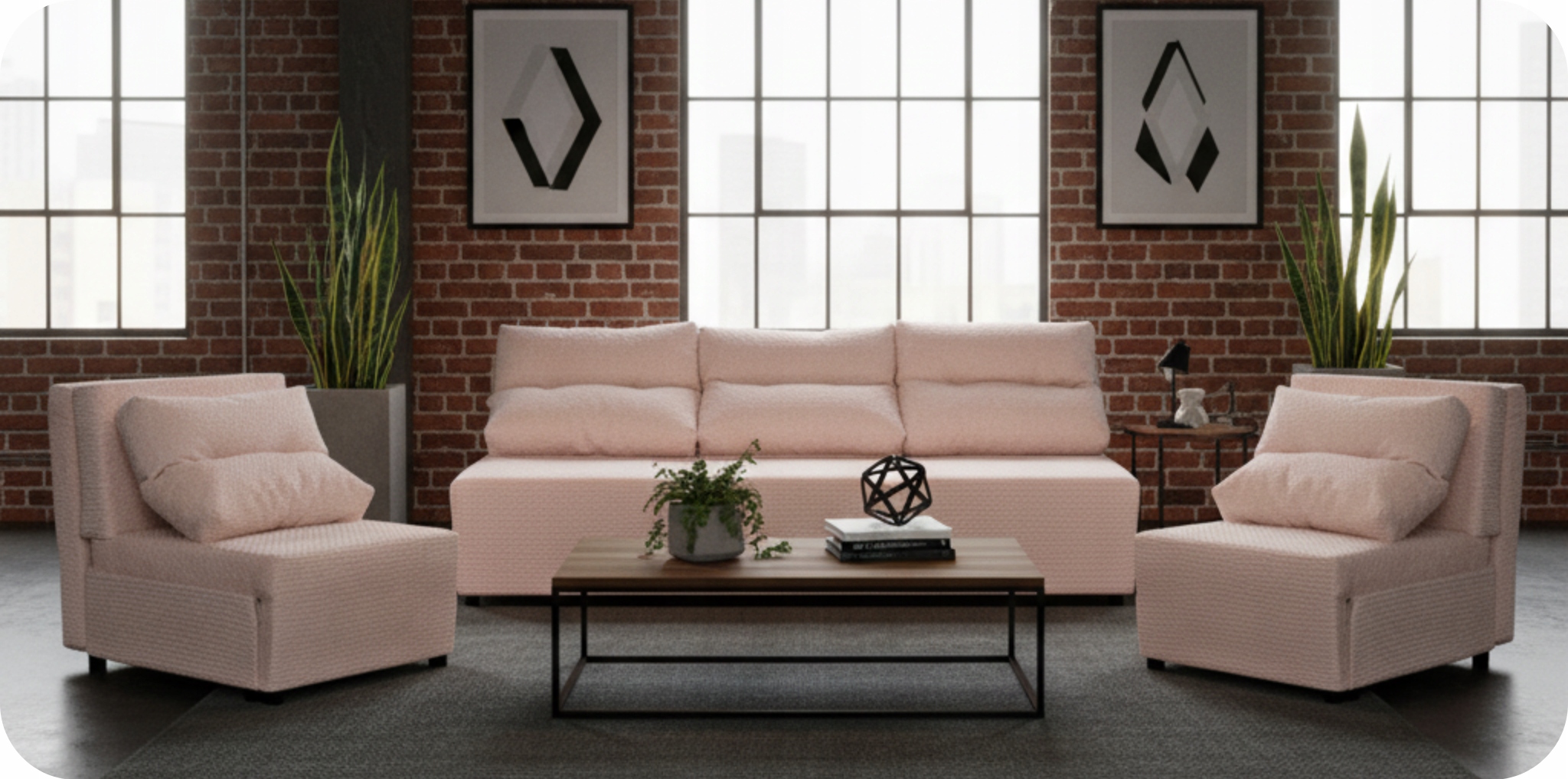 Zestaw mebli z funkcją spania KIMO – kanapa + 2 fotele