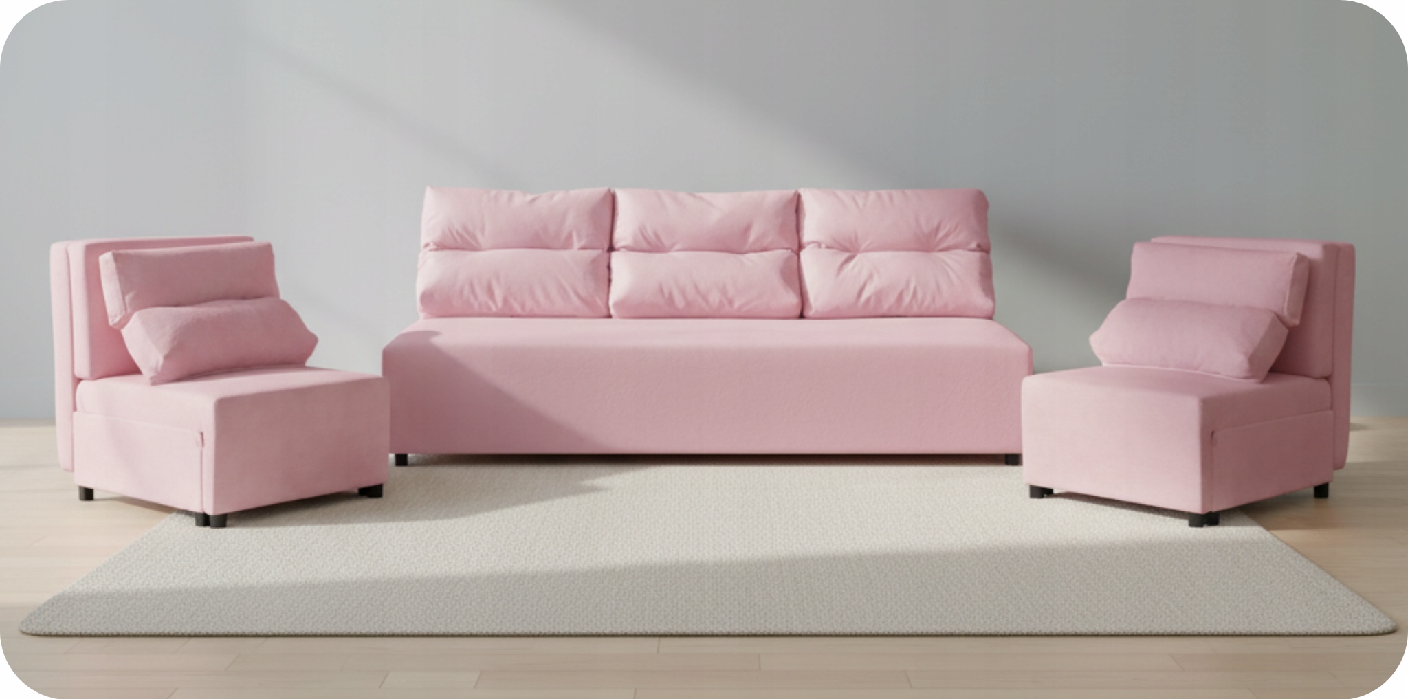 1. Kup zestaw mebli z funkcją spania KIMO – kanapa + 2 fotele