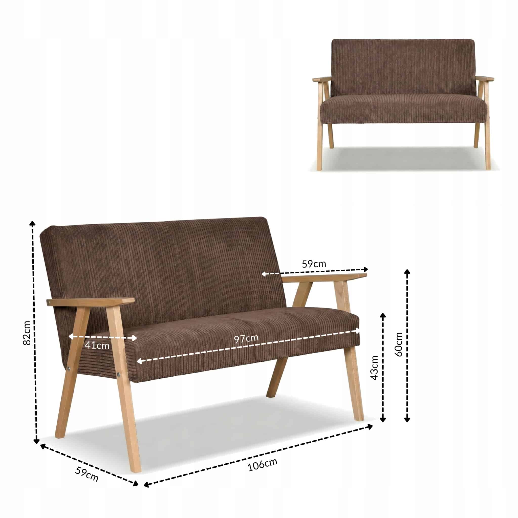 ✅ Typ mebla (sofa): Sofa tapicerowana w stylu retro, dwuosobowa