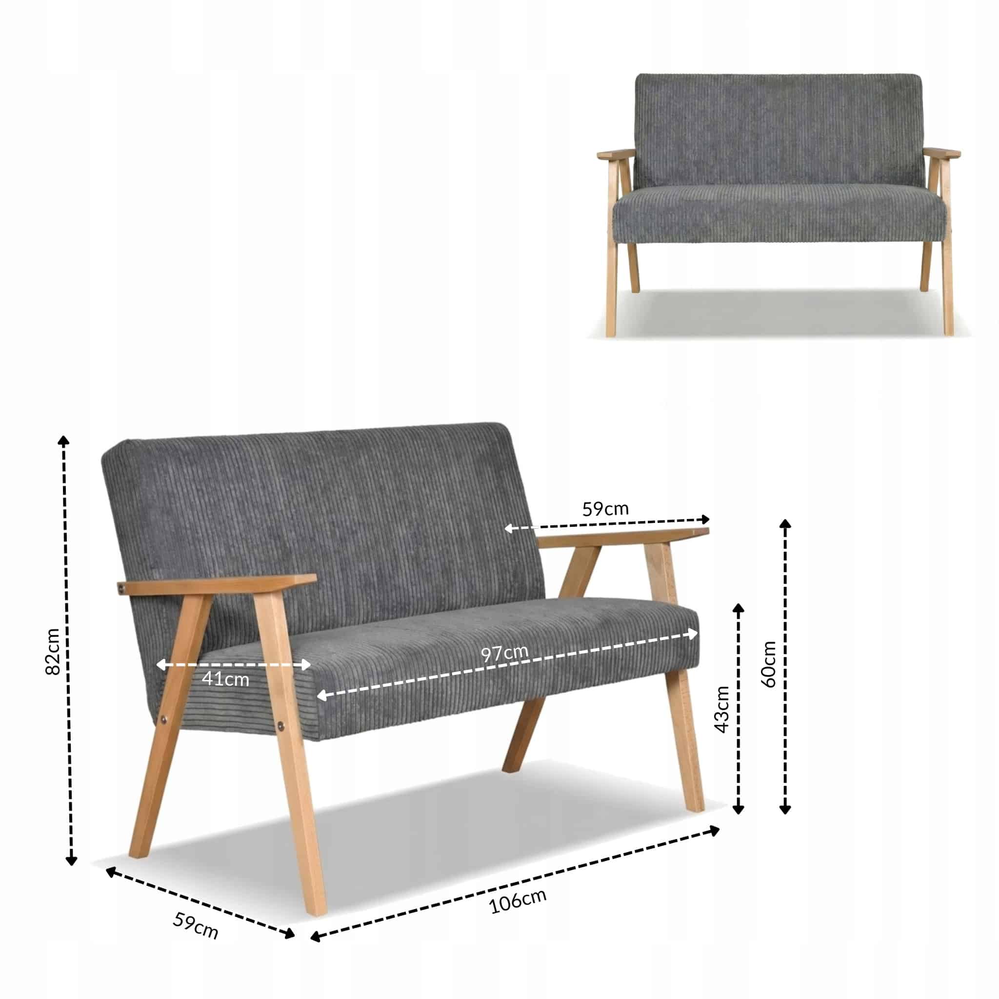 ✅ Typ mebla (sofa): Sofa tapicerowana w stylu retro, dwuosobowa
