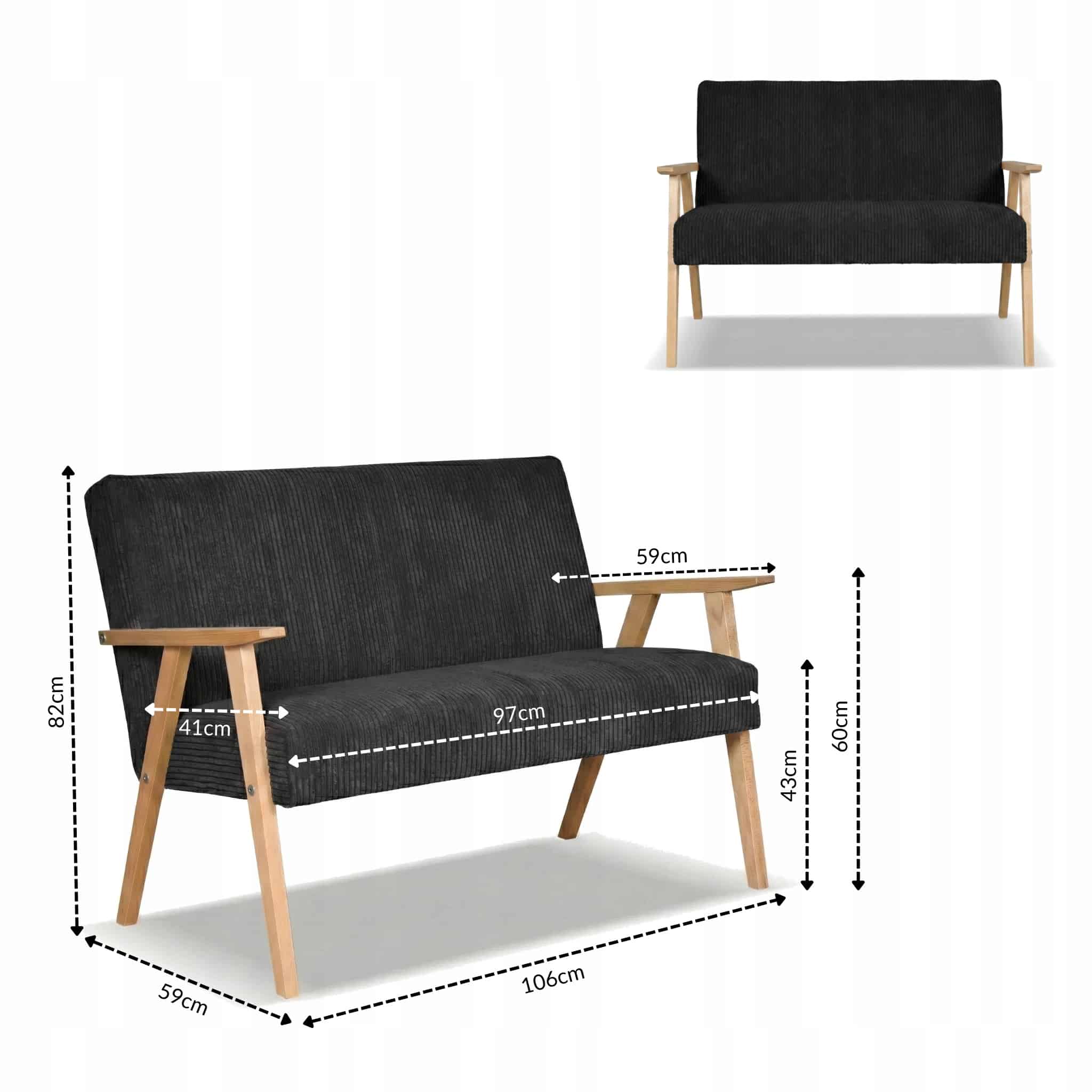 ✅ Typ mebla (sofa): Sofa tapicerowana w stylu retro, dwuosobowa