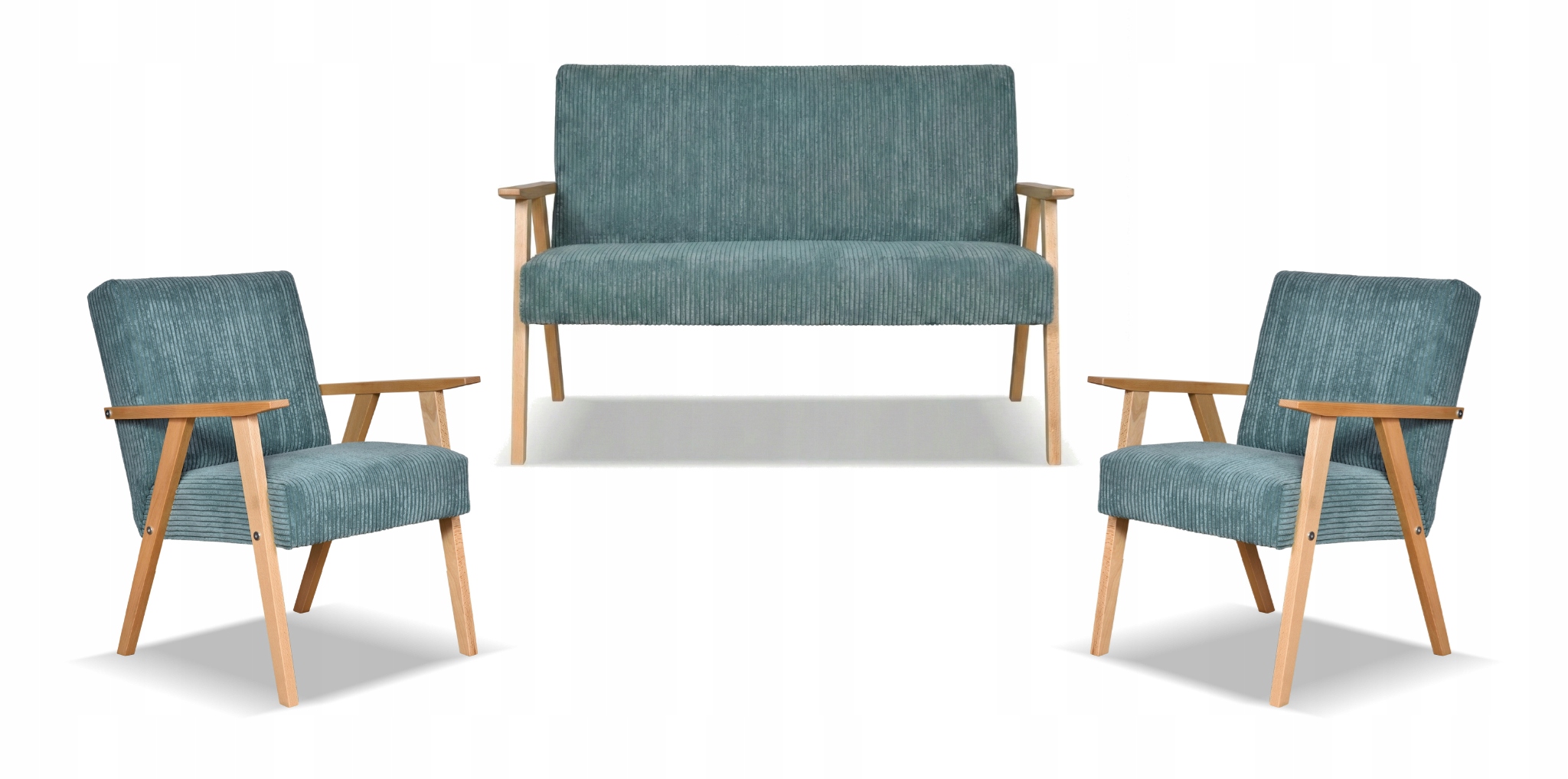 Zestaw mebli wypoczynkowych w stylu PRL retro vintage SOLER Family Meble sofa dwuosobowa + 2x Fotel