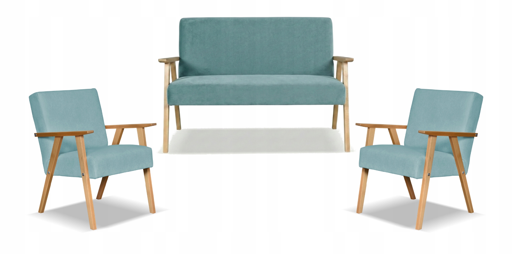 Zestaw mebli PRL retro SOLER sofa fotele Family Meble turkus welur Hunter
